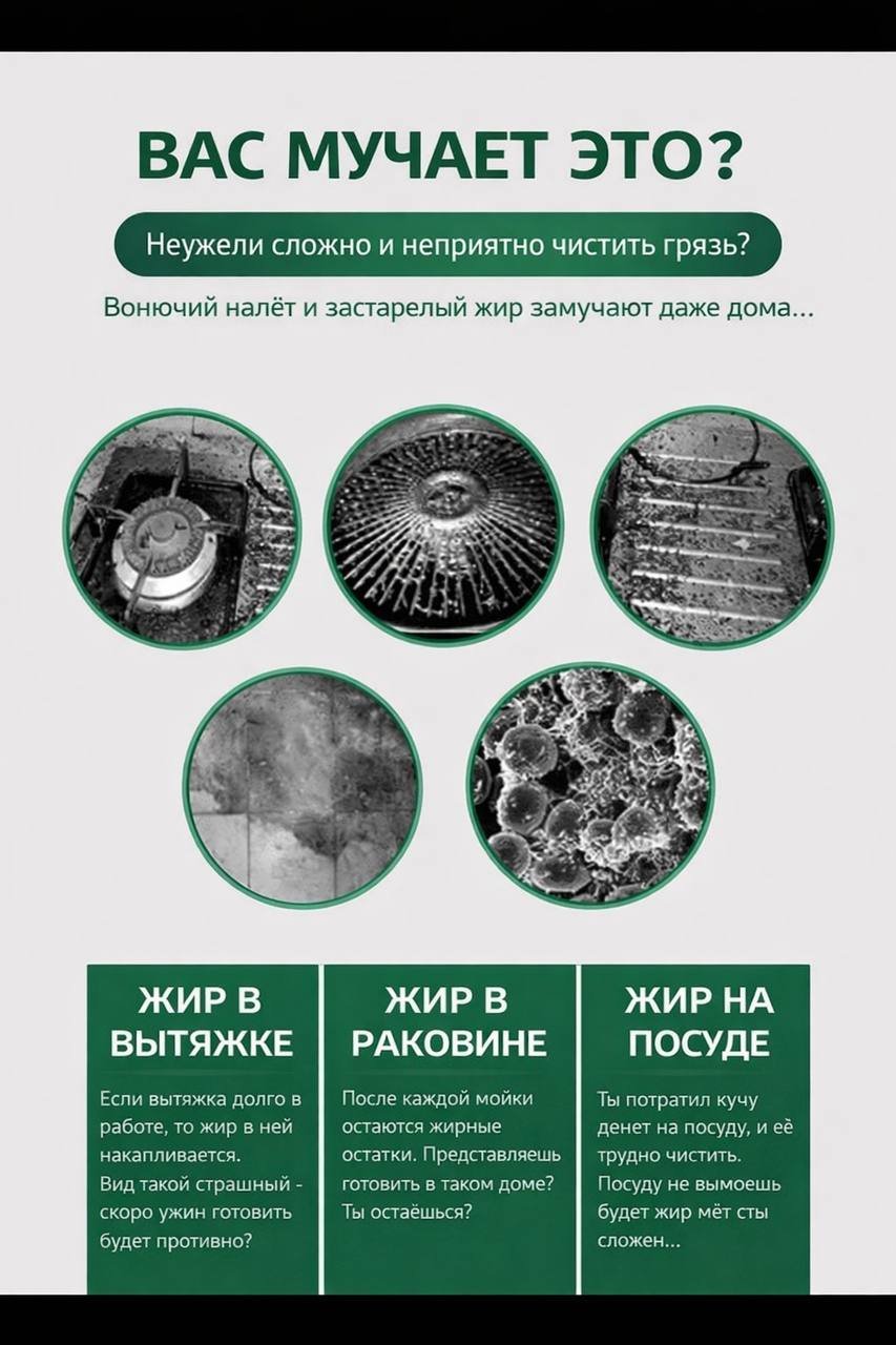 Эффективное чистящее средство, созданное для быстрой и глубокой очистки кухонных поверхностей. Оно легко справляется с застарелым жиром, нагаром и сильными загрязнениями, которые сложно удалить обычными средствами. Благодаря активной формуле средство быстро проникает в загрязнения, растворяет жир и помогает легко удалить его без долгого трения.