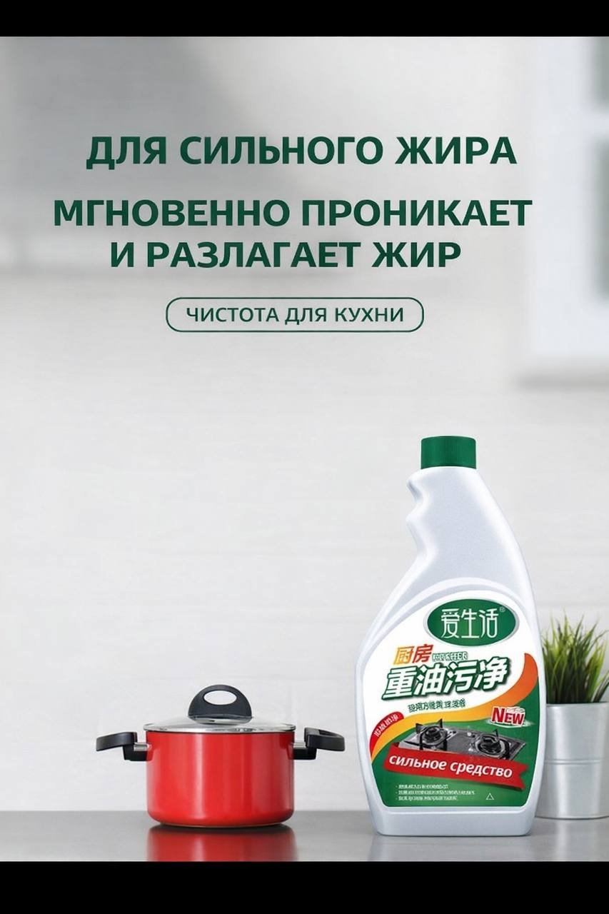 Средство идеально подходит для кухни и помогает поддерживать чистоту и свежесть. Оно эффективно очищает плиту, вытяжку, раковину, посуду и другие поверхности, где часто накапливается жир и грязь.
