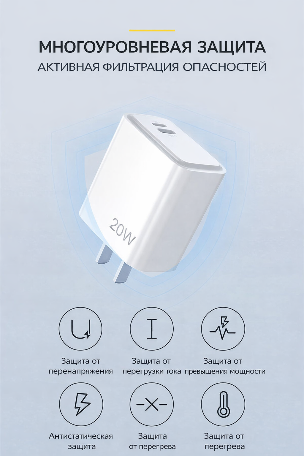 Компактное и мощное сетевое зарядное устройство мощностью 20W предназначено для быстрой и безопасной зарядки смартфонов, планшетов и других устройств. Современная технология быстрой зарядки позволяет значительно сократить время зарядки аккумулятора.