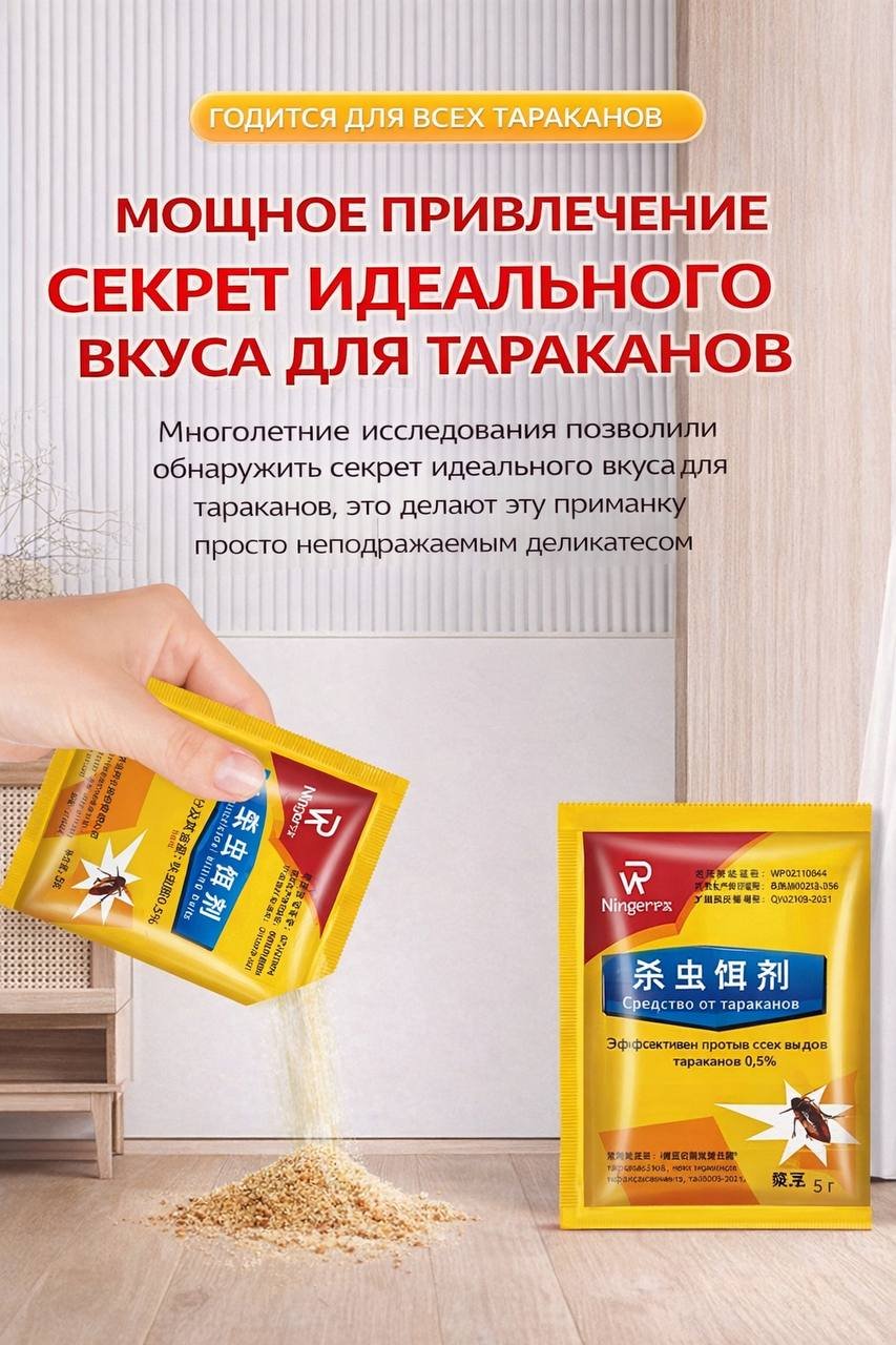 Средство эффективно привлекает тараканов и помогает полностью избавиться от них в доме, обеспечивая длительную защиту от повторного появления.