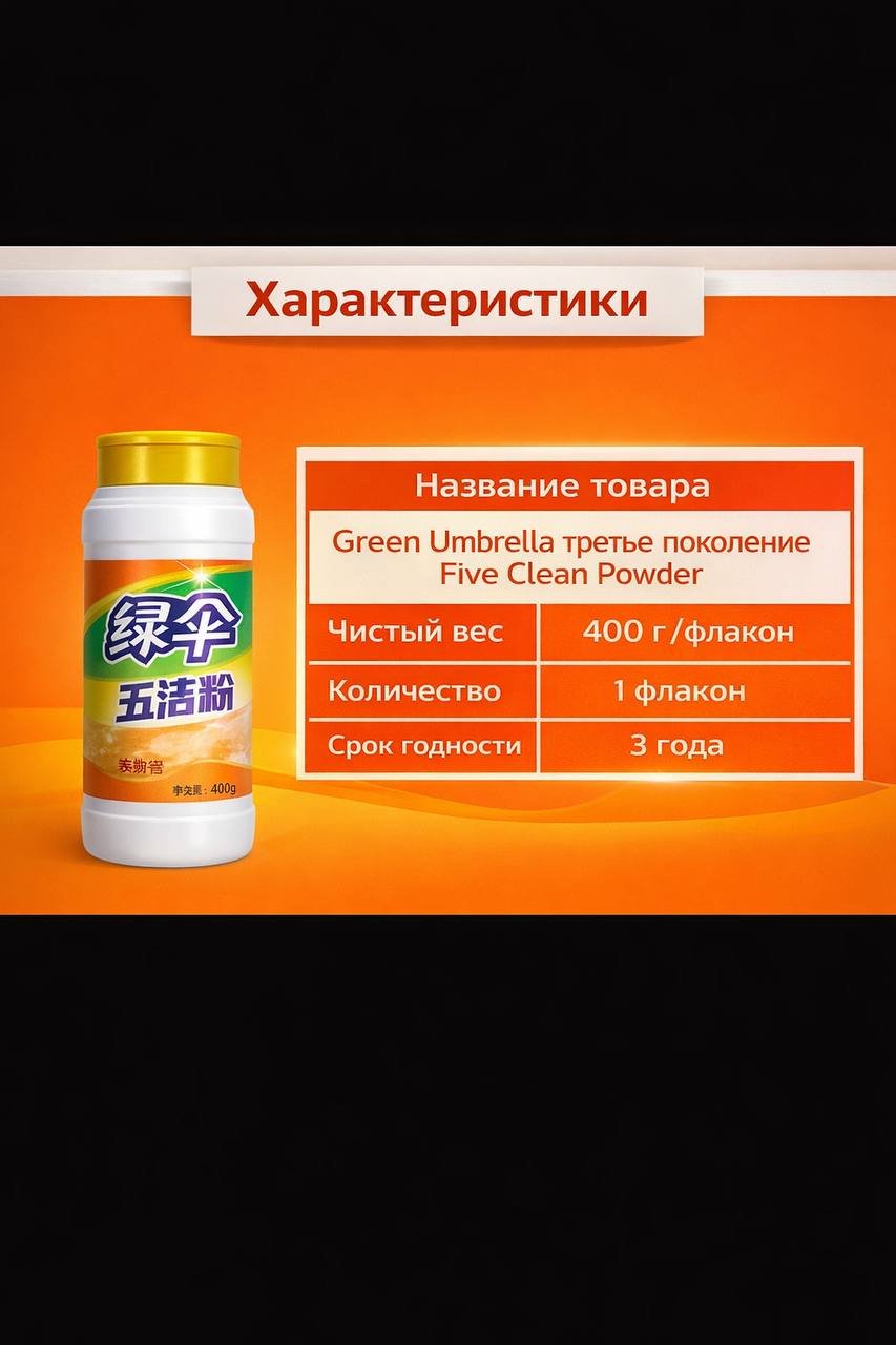 Универсальный чистящий порошок Green Umbrella Five Clean Powder (400 г) ✨🧼
